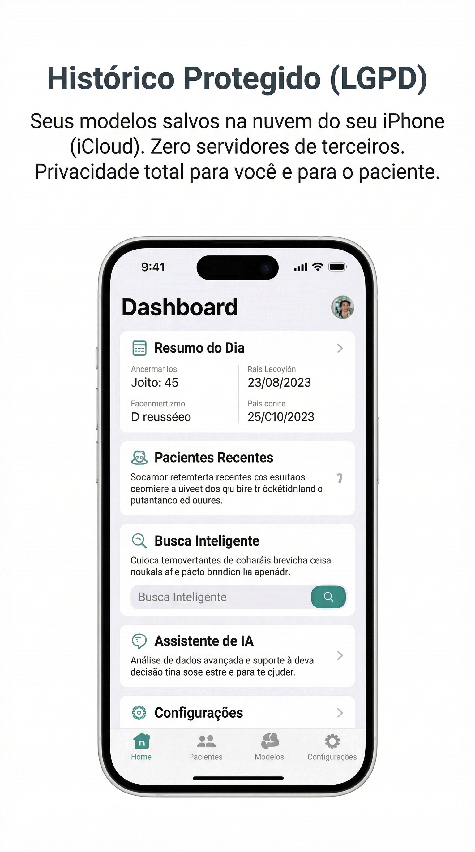 Os dados do paciente ficam sob o seu controle. Nenhuma informação clínica é compartilhada com plataformas externas.